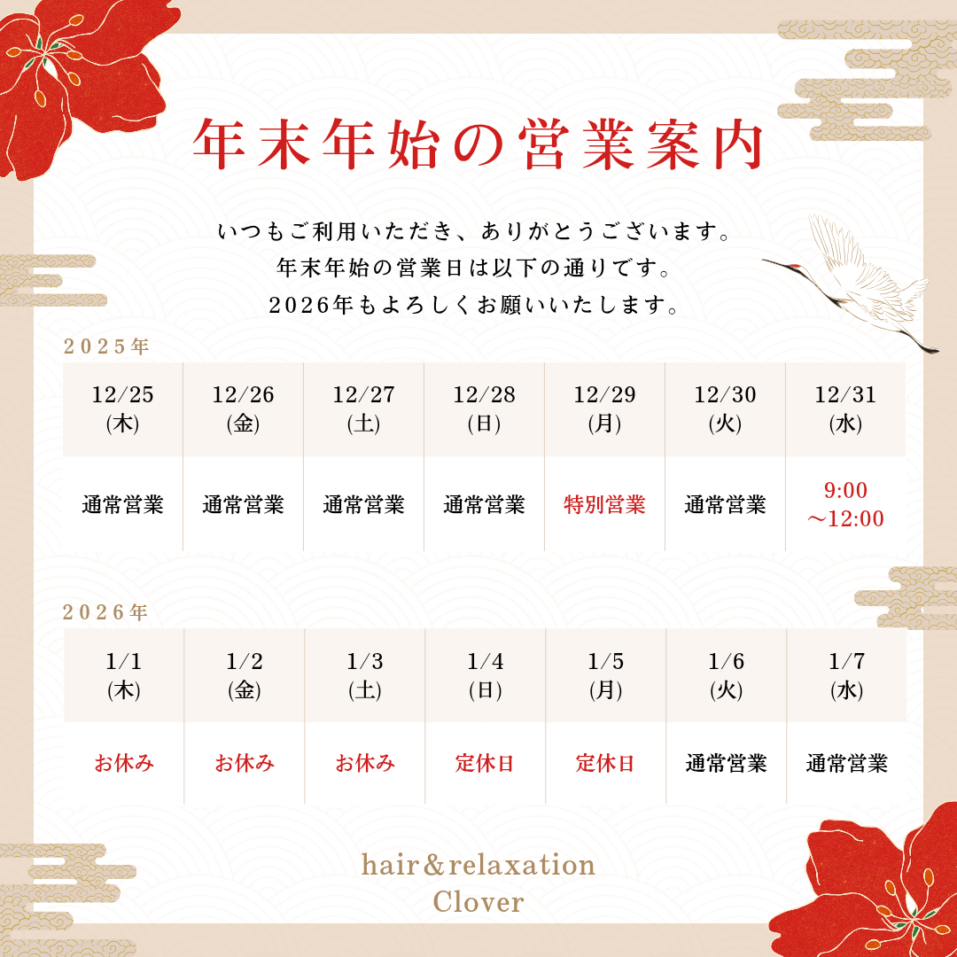 …【年末年始の営業のご案内】いつもCloverをご利用いただきありがとうございます。本年も大変お世話になりました。早いものでもう2025年も終わり…2026年も皆様により良いサービ […]